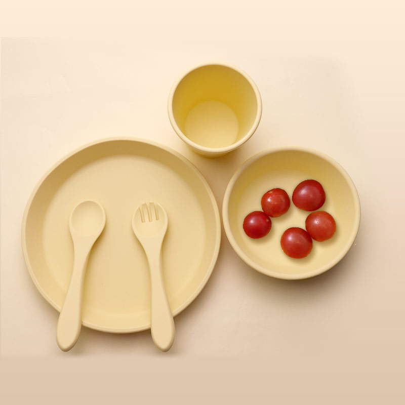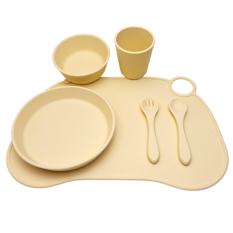 批發食品級硅膠兒童餐具寶寶喂食硅膠餐盤碗杯子餐墊 套裝